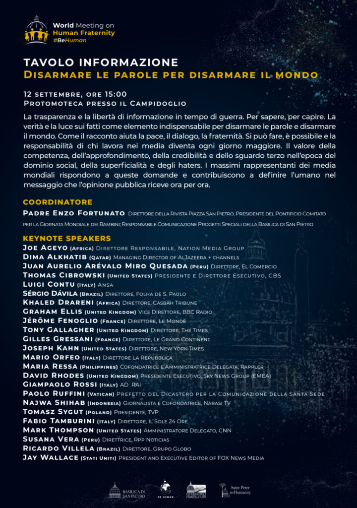 In un tempo di guerra, che é il tempo più difficile da raccontare, essere invitata al Tavolo dell’Informazione del Meeting Mondiale della Fraternità é una grande opportunità di confronto oltre che un grande onore.